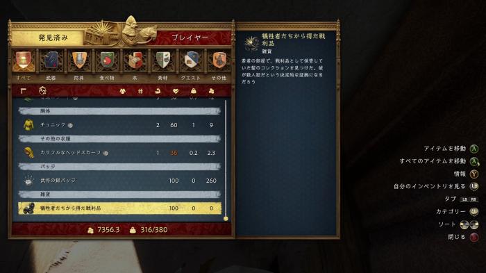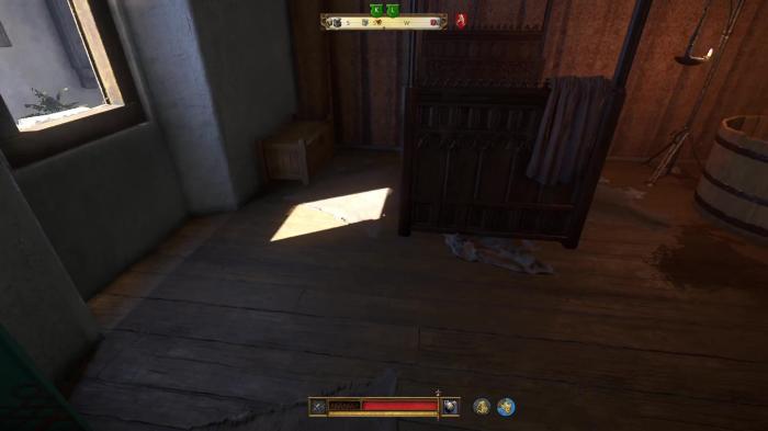 剣術の稽古後は、家の2階にあるヘンドルの部屋まで行き、部屋にあるベッドの横のチェストから「犠牲者たちから得た戦利品」を入手しましょう。