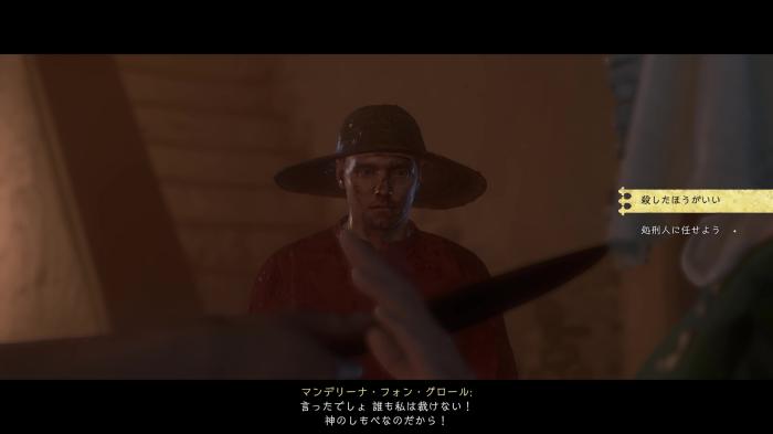 サデウスと対峙した後、1階に向かうとキャサリンたちと話すことができ、会話を進めると、マンデリーナを殺すか殺さないかを選択することができます。この選択により、メインクエスト「獅子の巣」で行えるキャサリンとの選択肢による会話の内容が若干変化します。