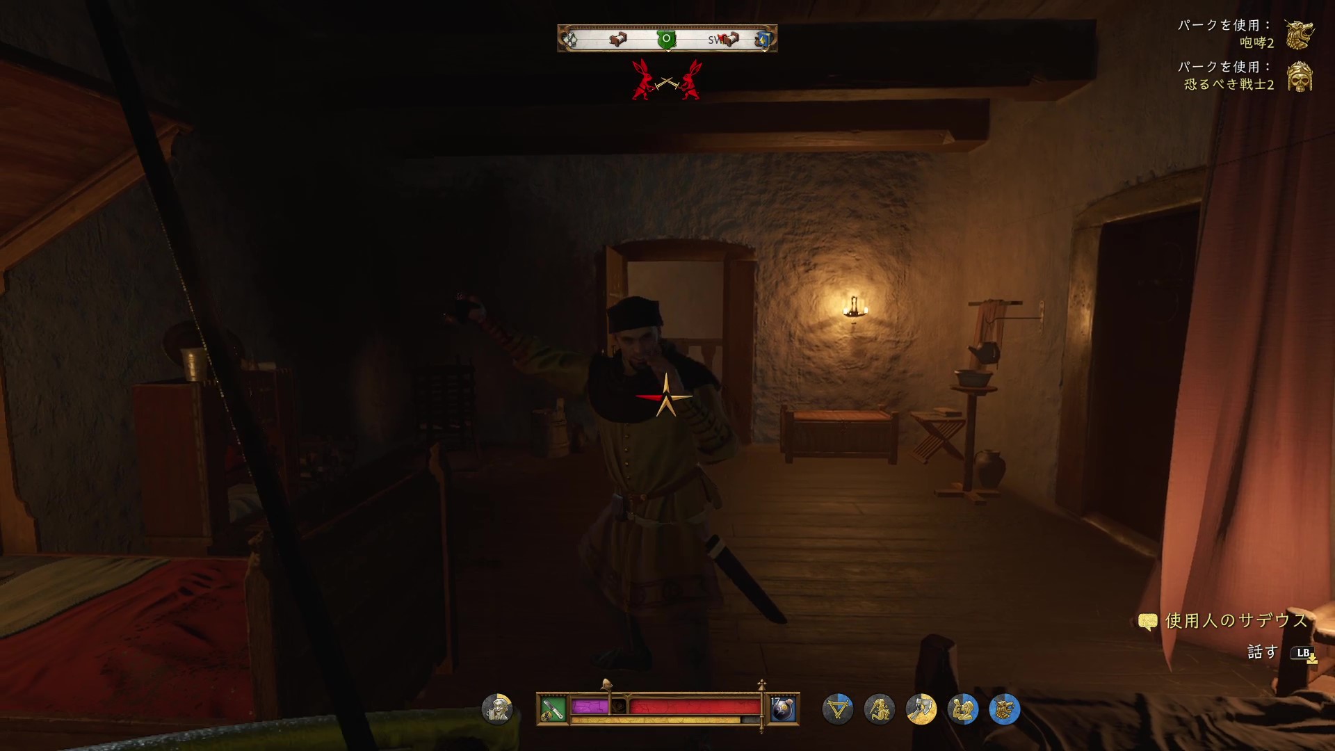家の入口にいる使用人のサデウスと話し、説得に成功する。説得は比較的簡単。もっともオーソドックスなやり方。