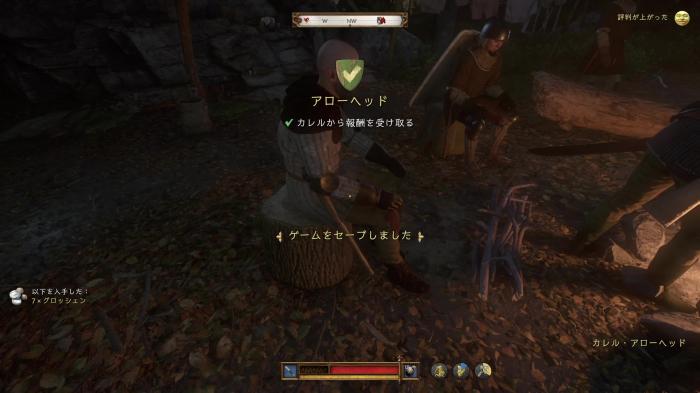 カレルと話すと報酬を受け取ることができます。タスククリア後、時間経過ののち悪魔の隠れ家でサイドクエスト「魔法の矢」が発生します。