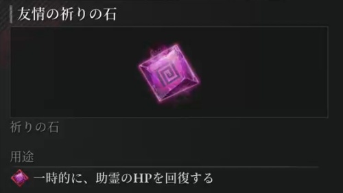 人形の王は連戦かつ攻撃力が高いため、助霊のHPが最後まで持ちません。助霊のHPを回復できる「友情の祈りの石」をキューブにセットしておきましょう。持っていない場合はジャンジョから金貨の実を使って交換しましょう