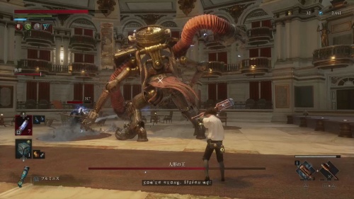 右手振り下ろしは遅らせてガードしてジャスガを狙います。2発目がくる前に振りが早い武器なら1発ダメージを与えることができます