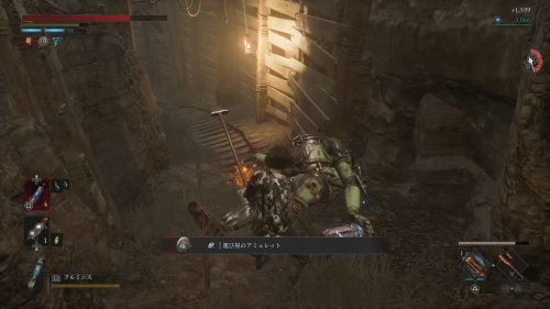 採掘場の先に道に進む道の左側に敵が隠れています。その先に特殊武器を強化できる月長石「闇の盟約の月長石」が落ちています