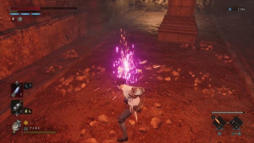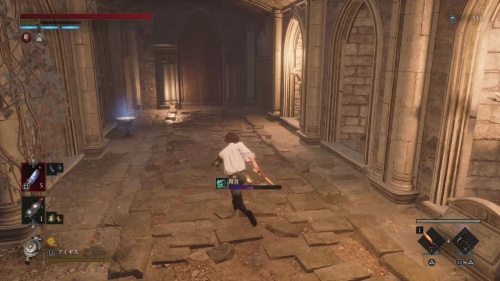 道なりを進むと歯車がある部屋に出てきます。目の前にある足場にジャンプで飛び移りましょう。ジャンプは〇長押しから左スティック押し込みで使用可能です。視点を下にしながらジャンプするとジャンプするタイミングが分かりやすいです