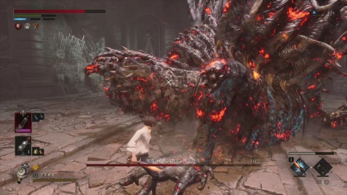苦境の道からは敵が人形からゾンビのようなモンスター「カーカス」になります。過熱させやすいため、炎属性が有効です。重要なアイテムは特にないので倒しながら道なりを進み聖堂に入りましょう