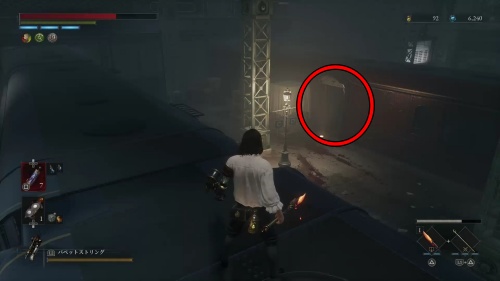 クオーツを回収したらハシゴを上がり、横に見える赤い車両の中を進みます。赤い車両を抜けたら階段を上がってショートカットを開けましょう