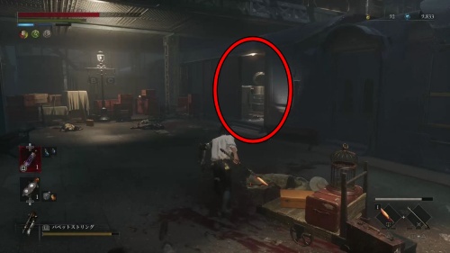 広場右奥の電車を進むとスタート地点の椅子があります。椅子の裏が隠し通路になっているので攻撃して道を空けましょう。金庫には「LADA 破損カートリッジ」が入っています