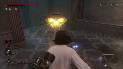 階段を上がり通路を進んでいると次元の蝶々が出現します。倒すと「安定型の錬金術ブースター」を落とします