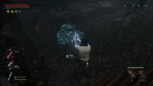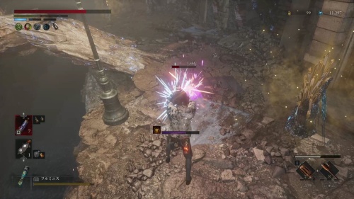 このエリアには崩壊ガスを出す結晶がそこらじゅうにあります。結晶は攻撃することが破壊ができます。「アーク 崩壊カートリッジ」を装備し、ベルトに「特殊耐性アンプル剤」と「特殊浄化のアンプル剤」を入れておきましょう