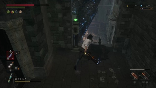 ショートカットのハシゴから左に進むと上に上るハシゴがありボス「幻を歩く者」と戦闘になります。倒すと「リージョンキャリバー」と「闇の盟約の月長石」を入手できます