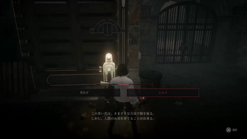 選択肢で『彼は人形との戦いで』と嘘をつくとレコード「Why」がもらえます。『彼はモンスターになった』と真実を伝えてしまうと「電撃の研磨剤」しかもらえません