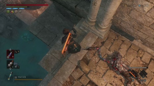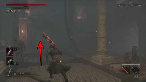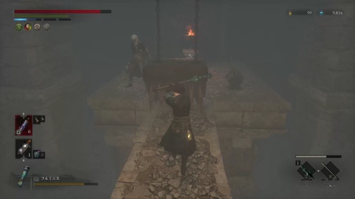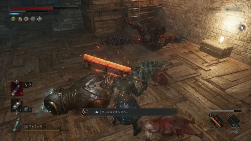 ハシゴを上がりもう一つの道を進むと人形を持った中ボスが出現します。倒すと「リージョンキャリバー」を落とします