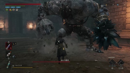 扉の守護者は防御力が非常に高く、普通にダメージを与えて倒すことはできません。3回ダウンを取り致命攻撃を入れると倒すことができます