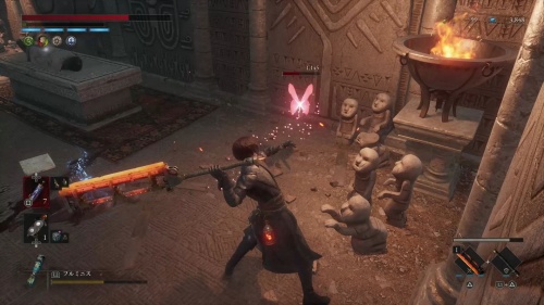 ハシゴを上りきり、奥の部屋に進むと赤い次元の蝶々が出現します。倒すと「完全な盟約の月長石」を落とします
