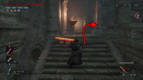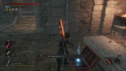 ハシゴを上っていき、エレベーターに乗るとボス部屋前に到着します。近くにスターゲイザー「アルケ大修道院 礼拝室」があります