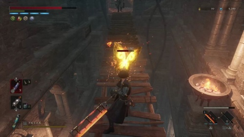 エレベーターを上って橋を渡る途中に金の次元の蝶々が出現します。倒すと「完全な月長石」を落とします