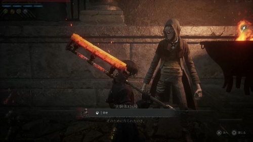 実験体826号がローザ・イサベル通りの橋の上にいます。カーカスクリスタル斧は実験体826号からしか購入できないので、武器コンプリートを目指している人は購入しに行きましょう