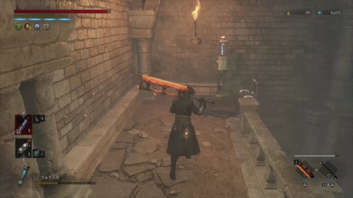 もう一つの道に進むと中ボスがいますが、特にアイテムを落とさないため無視して先にあるレバーを調べましょう。ショートカットのハシゴを上がり、最初に上ってきたハシゴを降りると先に進めます