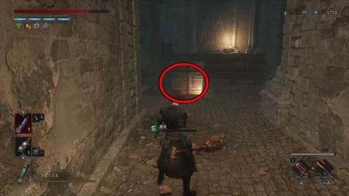 階段を登り右側の通路手前に進むとショートカットの扉があります