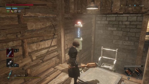 建物に入ったら右側の階段を降りて、左に曲がります。奥に進むとハシゴがあるので上りましょう