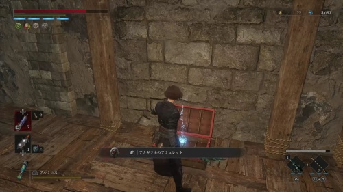 細い足場から右に進み下に降りると宝箱があります。中には「アカギツネのアミュレット」が入っています