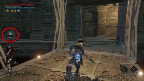 画像の位置の宝箱に「跳躍のアミュレット+1」があります