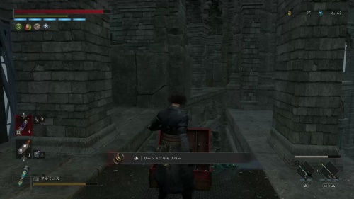 中ボスを倒した先の鉄骨と橋を渡った右側に宝箱があり、中に「リージョンキャリバー」が入っています