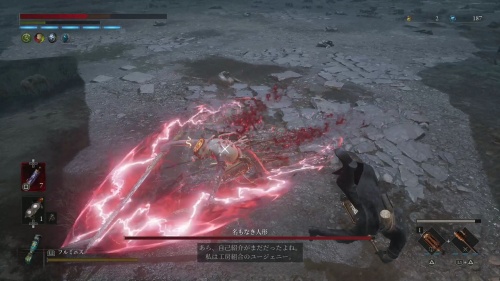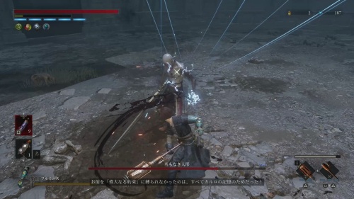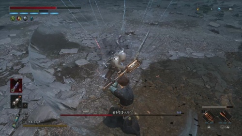 名もなき人形の主な攻撃で4連撃があります。縦斬りの3撃目をガードしたら4撃目を前に回避して反撃しましょう