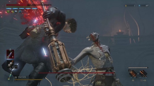怯むと体が赤く光り、その場で少し止まります。タメ攻撃を当ててスタッガー状態を狙いたいです