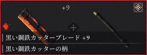 黒い鋼鉄カッターは隠者の洞窟で入手できる進化武器です。初期補正値がAなので進化クランクを使うとSになります。サラマンダーの短剣に飽きた場合はこちらを使いましょう