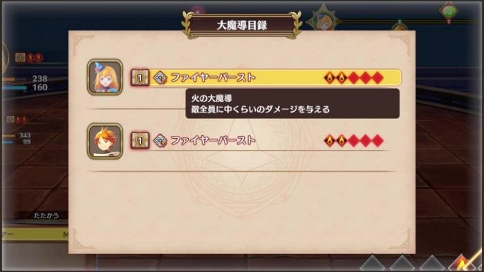 大魔導は、エレメンタルオーブを消費して使用する強力なスキルで、戦闘中に「大魔導目録」コマンドで大魔導リストを表示することができます。