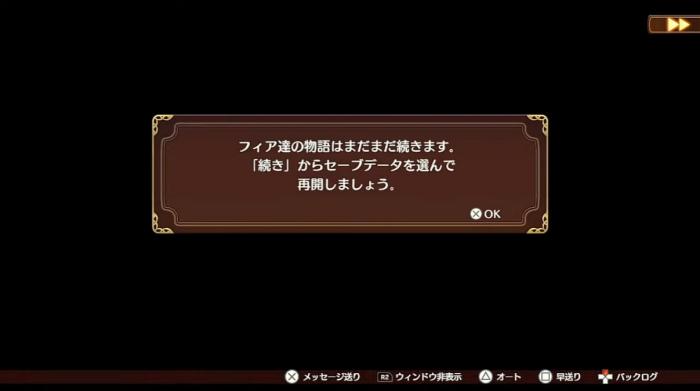 クリア後は、セーブを行うとセーブデータが「エピローグ 聖霊祭」と表示され、続きからプレイすることができます。