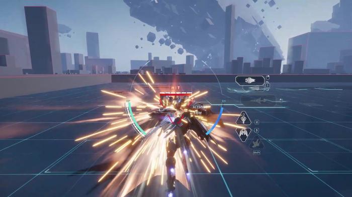 サブ武器をヒートブレードモードに切り替え、相手に流体アーマーを無視する物理属性の直接ダメージを与え、スタッガー&ノックバックさせる。空中でより低い位置にいる目標を攻撃する場合は、パリィ不可の振り下ろし攻撃を繰り出すようになる。