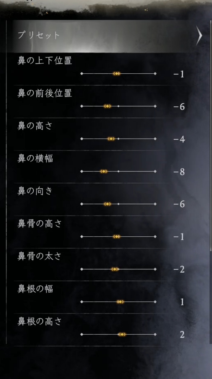 華やかな顔の大陸系の美人キャラクリレシピです。