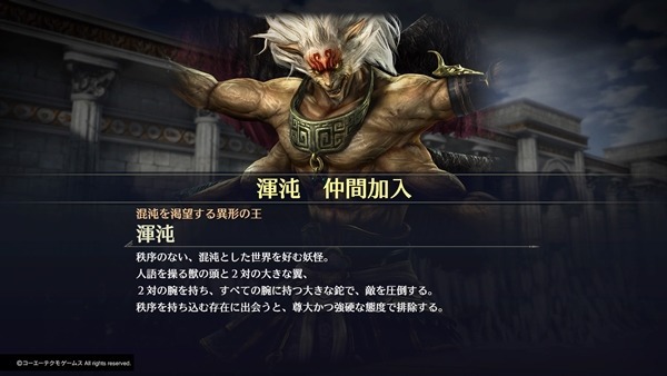 また、ストーリーモードクリア後に難易度「渾沌」で条件を満たすことで、武将''[[渾沌]]''を仲間にすることも可能。
