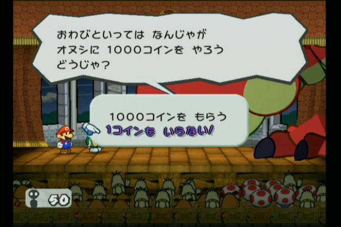 ゴンババのHPが0になると、マリオを誘惑する質問を3回してきますが、この時否定する選択肢を選ばないとダメージを受けてしまうので注意しましょう。