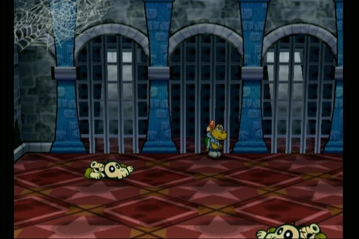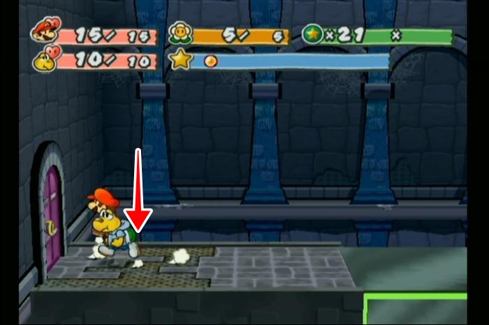 - ブラッディホネノコと戦ったエリアまで戻り、ペーパーモードで鉄格子をすり抜けて「ゴンババ城のカギ」を入手