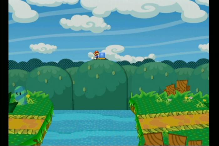 - 土管に入って背景のエリアに行き、奥にあるスイッチを押して川に橋をかける