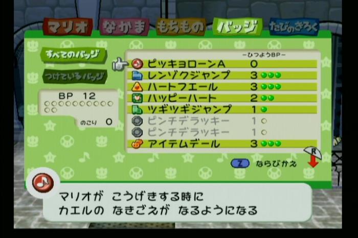 階段を降り、黄色ブロックを下げた後にノコタロウを飛ばして「ゴンババ城のカギ」を入手バッジ「ピンチデマモールP」入手