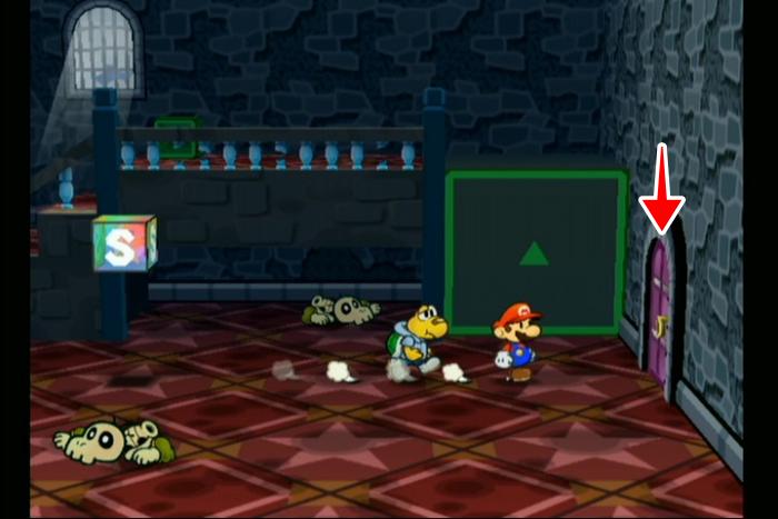 - セーブポイントがあるエリアの緑色ブロックで上のエリアに進み、「ゴンババ城のカギ」で扉を開ける