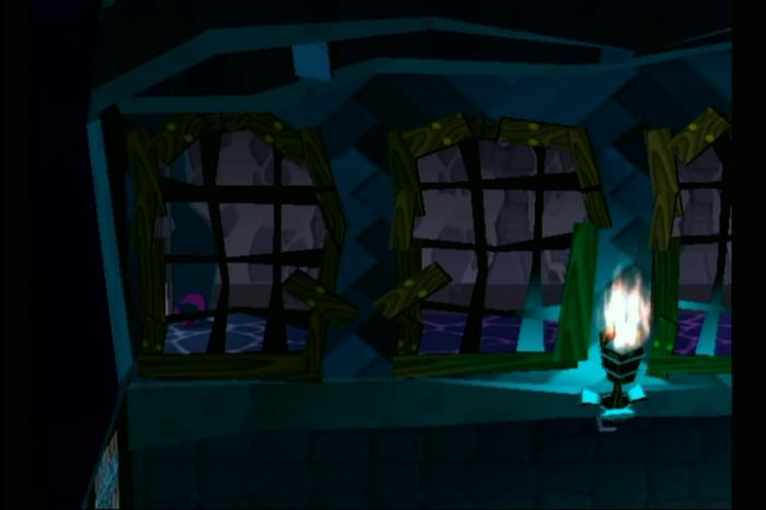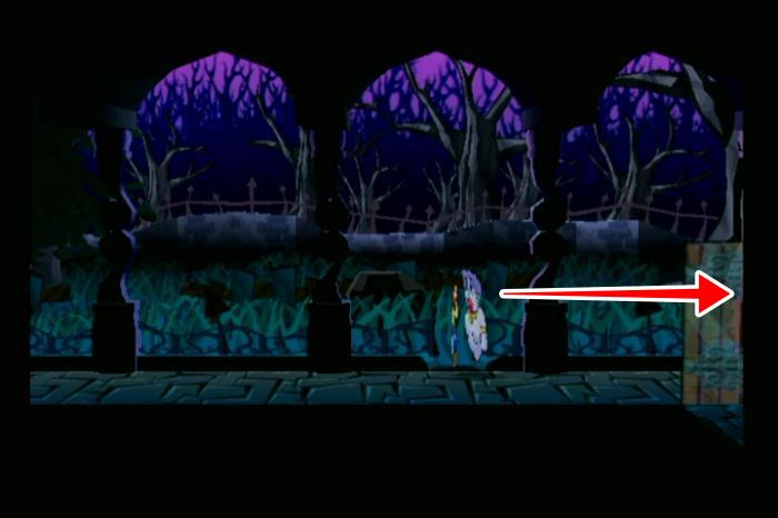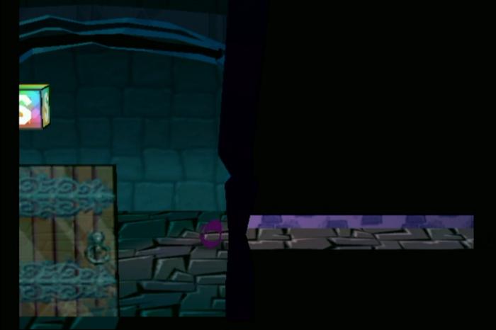- クルリンジャンプで塞がれた床を壊し、背景のエリアへ