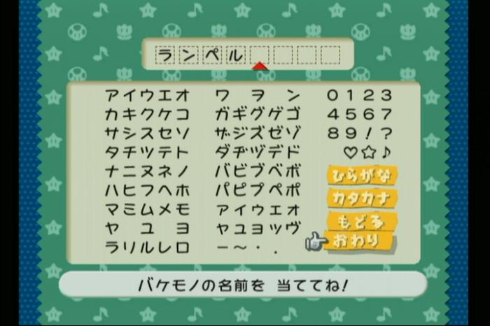 にせマリオの本当の名前を入力「ランペル」と入力する