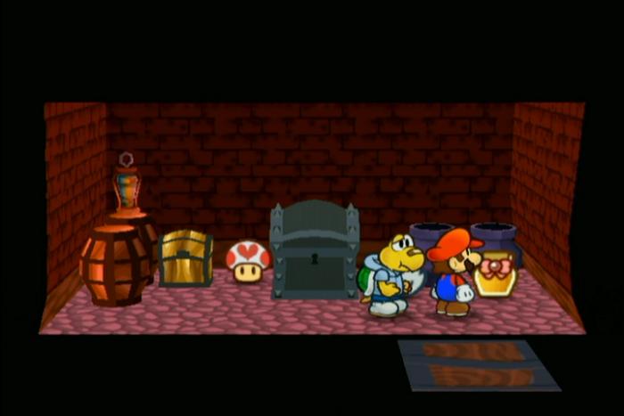 ゴロツキタウンの地下にある巨大黄色ブロックをスーパーハンマーで壊し、2つの青色のスイッチを押すとステージ1のハナハナ村とステージ2の大樹へ行くことができる土管がそれぞれ出現します。