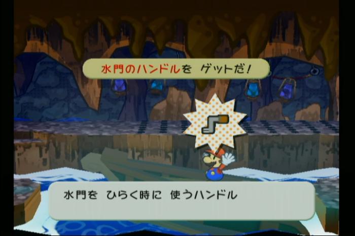 - 上のエリアのボートパネルでボートモードになり、滝から落ちて水門を抜ける