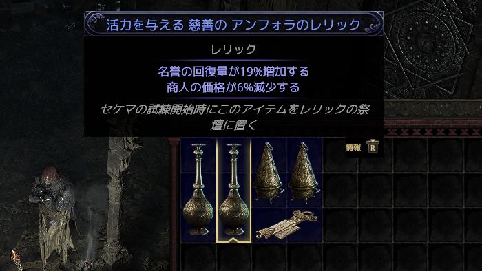 レリックは、試練に様々な影響を与えるもので、試練中持続します。