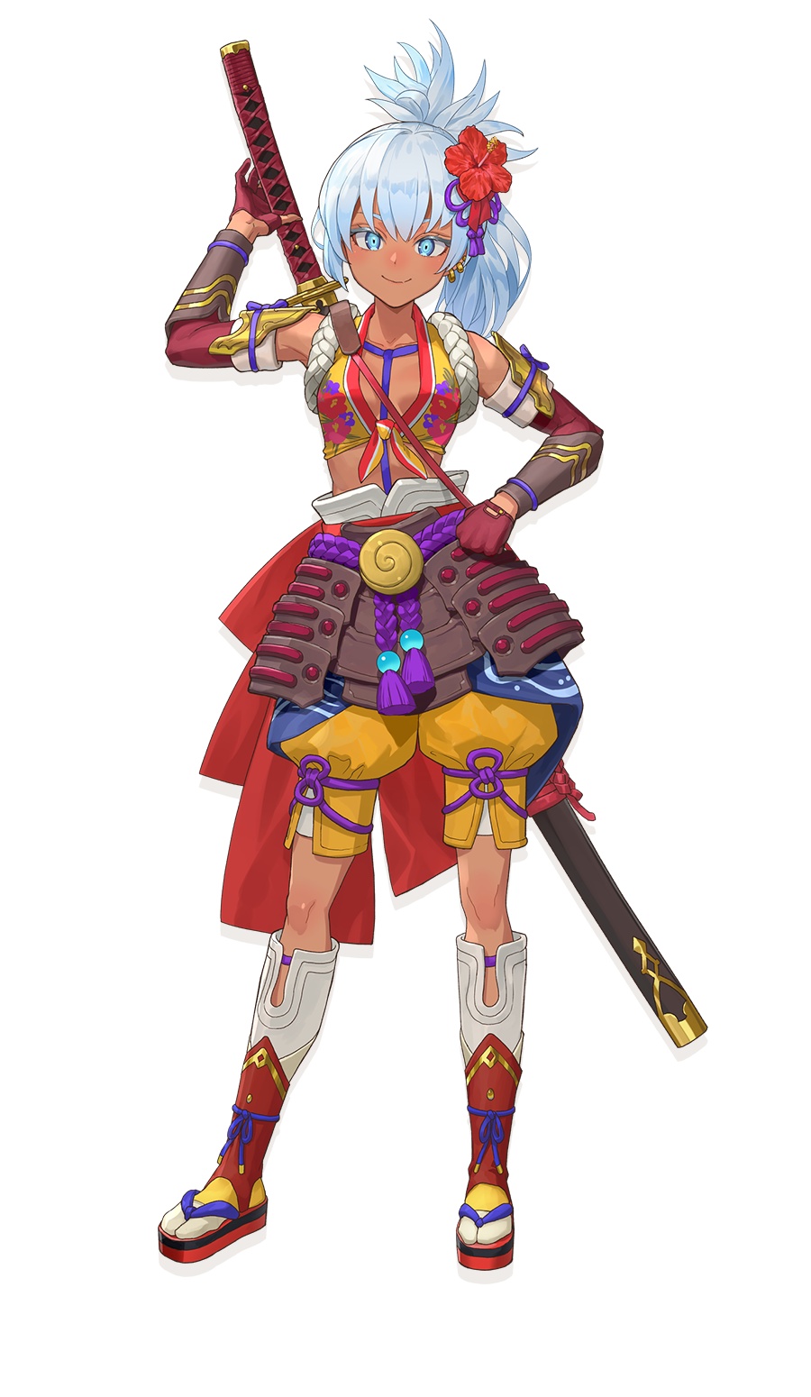 アズマの国の夏と剣を司る女神。 天真爛漫な性格で、体を動かして遊ぶのが大好き。 剣聖の如き腕前を持つが、なんでも力技で解決しようとする。 |