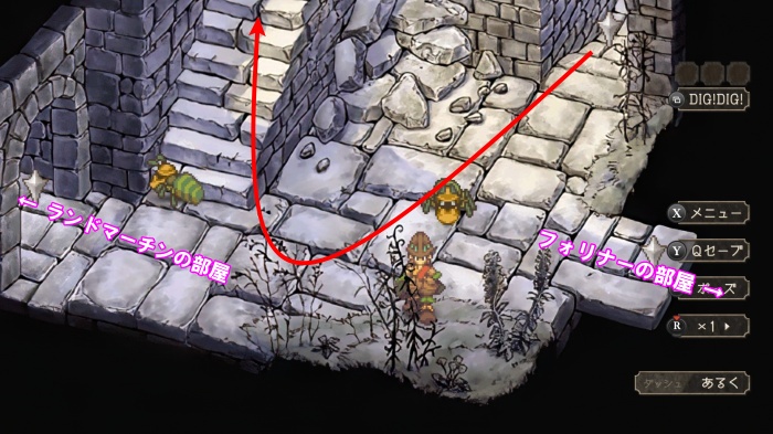 左右の部屋にフォリナーとランドアーチンが出現するエリアまで来たら、階段を上がって南入口を開通しよう