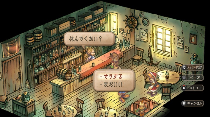 酒場のそばにいる女性からギュスターヴたちの装備を持ち出すことができるが、持ち出さなくてOK