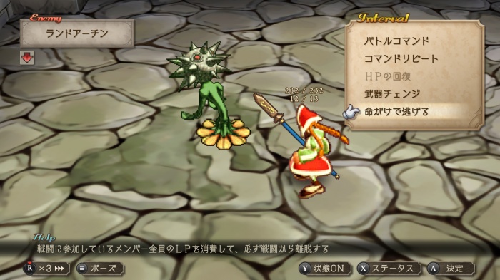 敵との戦闘でLPが少なくなったり、武器が壊れたらここから町に戻って宿屋で休んだり、武器を購入したりしよう