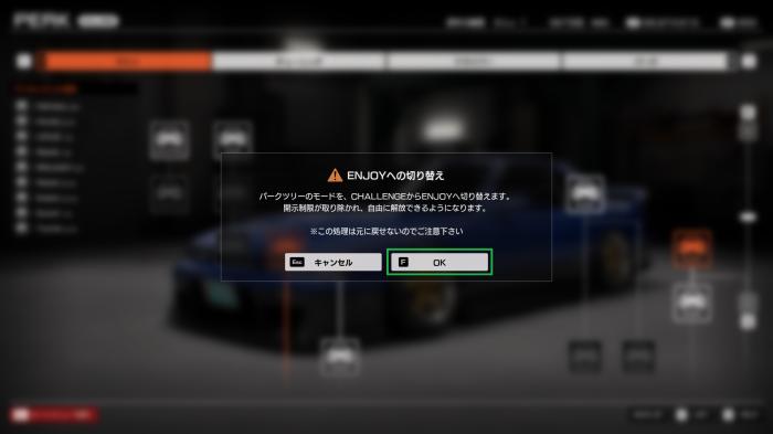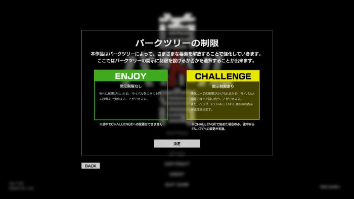 早期アクセス版では、難易度を担保する為、パークツリーの進行に対して制限を施していましたが、より自由に遊びたいという声にお応えし、制限を取り除ける選択肢を用意しました。